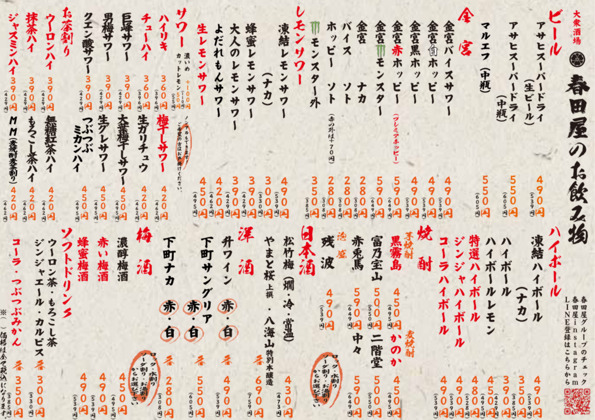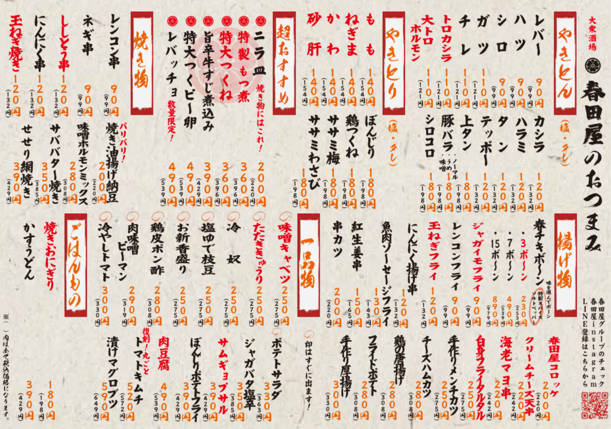 春田屋のこだわり 新大久保 春田屋では、10坪前後の小さな居酒屋です。 お客様もスタッフも「家に帰ってきたような」心地よい空間を目指しております。 全てのお客様に笑顔が届けられるよう、今日もお待ちしております。 やきとんは1本90円から(タレ・塩)。串揚げ、1品料理などなど、ちょっと寄って行ける場所をご提供しております。 直送の鮮度の良いモツを丁寧に串に刺しています。 地域に愛されるお店を目指し毎日、楽しく、笑顔でご来店お待ちしております!